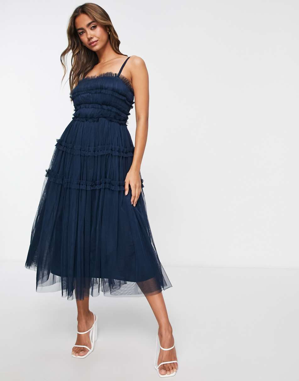 Navy blue is one of the most practical colors to wear in addition to black, and it looks gorgeous, especially on a dress. This particular dark shade of blue can be worn at any season, and it can easily be paired with various color combinations as well.